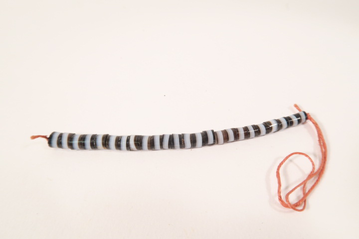Achatperlen, welche von Idar-Oberstein nach Afrika gehandelt wurden. Diese Perlen hatten in Teilen Afrikas Geldcharakter. Kürzlich in Idar-Oberstein gefundener Altbestand.