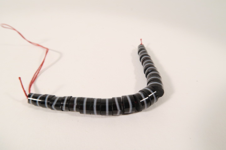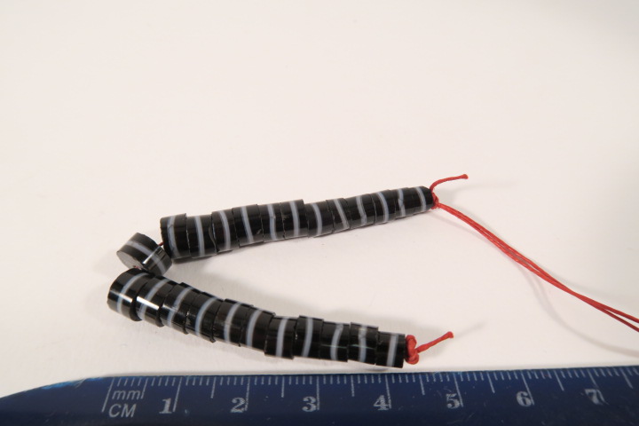 Achatperlen, welche von Idar-Oberstein nach Afrika gehandelt wurden. Diese Perlen hatten in Teilen Afrikas Geldcharakter. Kürzlich in Idar-Oberstein gefundener Altbestand.