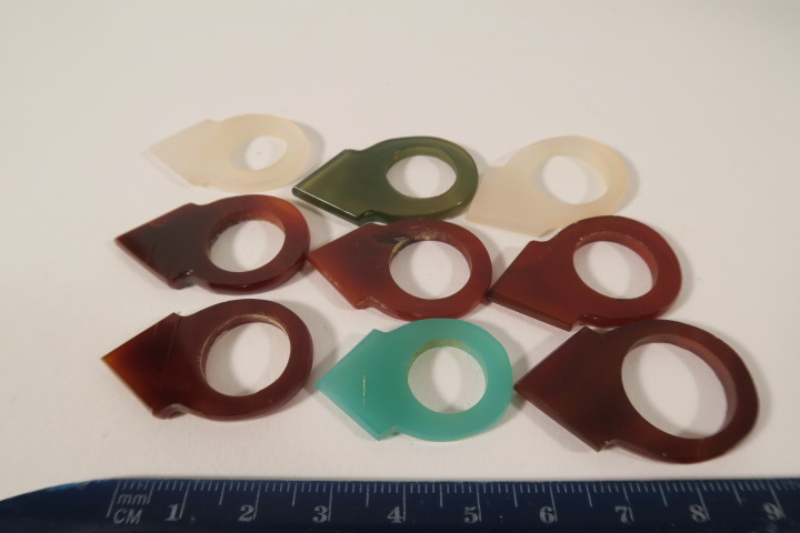 9 schöne Anhänger aus Achat , Schmuck mit Geldcharakter. Kürzlich gefundener Altbestand aus Idar-Oberstein für den Handel nach Westafrika gefertigt. Länge ca. 31 - 37mm.