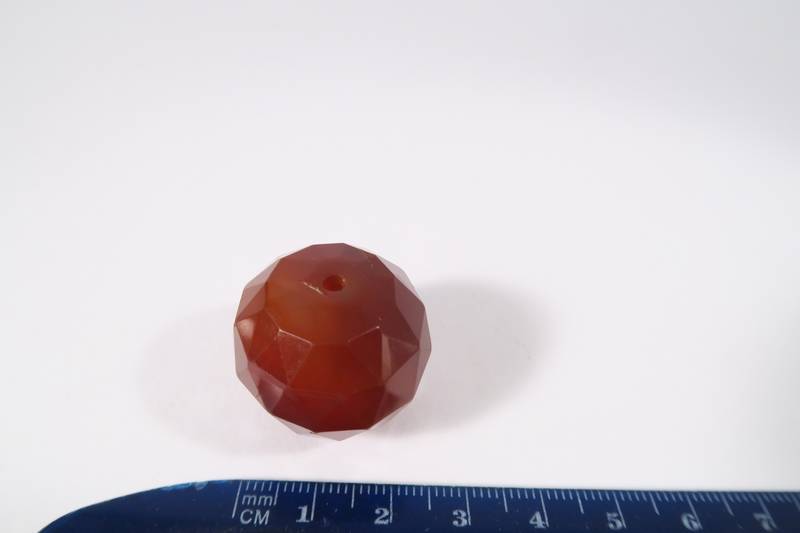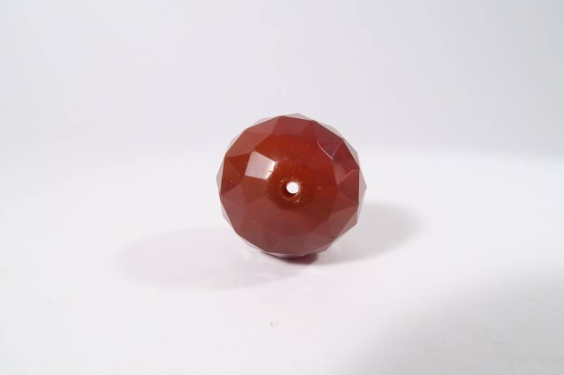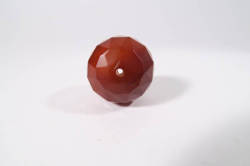 Große alte facettierte Steinperle, in Idar-Oberstein aus basilianischem Achat hergestellt und geschliffen. Größe ca. 25 x 26mm. Gewicht 25gr.