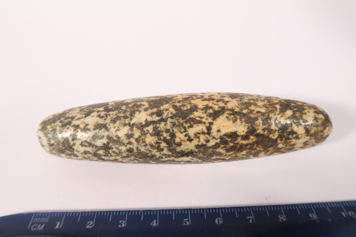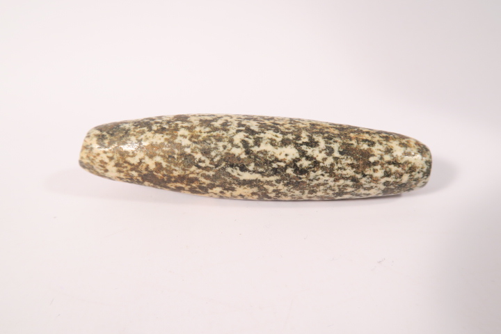 Große alte Steinperle, Gneiss oder Granit aus dem Kulturraum der Dogon. Sichtlich getragen. Größe ca. 101 x 124mm. Gewicht 99gr.