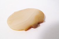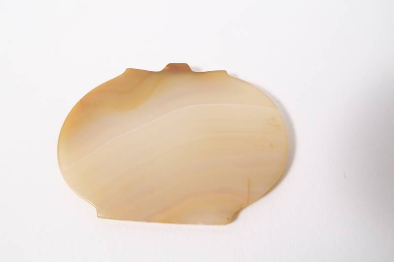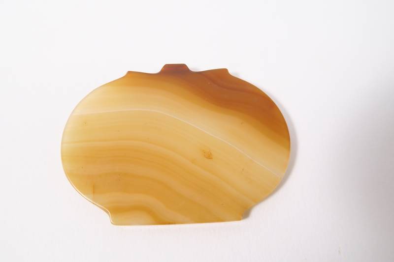 Schöner großer Anhänger aus Achat aus dem Kulturraum des Sahel, vermutlich von Idar-Oberstein nach Westafrika gehandelt. Guter Zustand mit kleinen Chips. Größe ca. 63 x 47 x 4mm. Gewicht ca. 23gr.