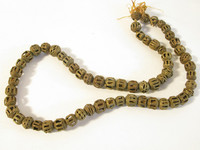 Kleine Metallperlen, altes traditionelles Handwerk der Ashanti aus Ghana. Hergestellt im Wachsausschmelzverfahren. Kleinere Gußfehler sind teils vorhanden. Stranglänge ca. 55cm. Maximaler Durchmesser der Perlen ca. 9 - 11mm. Über 50 Stück Perlen pro Strang. Ideal zum Schmuckdesign. Recht große Löcher zum Fädeln. Preis je Strang. Gesamtgewicht ca. 93gr.