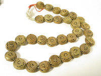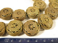 Fein gearbeitete Metallperlen, altes traditionelles Handwerk der Ashanti aus Ghana. Hergestellt im Wachsausschmelzverfahren. Kleinere Gußfehler sind teils vorhanden. Größe der plättchenförmigen Perlen ca. 22 x 22 x 11mm. 30 Stück Perlen pro Strang. Ideal zum Schmuckdesign. Recht große Löcher zum Fädeln. Preis je Strang. Stranmglänge ca. 62cm. Gesamtgewicht ca. 200gr.