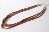 3 Stränge alter Bauxitperlen aus Ghana. Bauxit ist ein Rohstoff für die Aluminiumgewinnung. Die Perlenfabrikation aus Bauxit hat eine lange Tradition in Ghana. Getragene Perlen mit glänzender Oberfläche. Länge nur Perlen jeweils ca. 75cm. Durchmesser der Perlen ca. 6 - 7mm. Gesamtgewicht ca. 135gr.