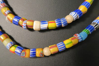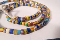 Alte Glasperlen aus dem Afrikahandel in zumeist gutem altersgemäßem Zustand, teils bestoßen mit Chips. Länge des Strangs ca. 90cm.  Durchmesser der Perlen ca. 6 - 8mm. Gewicht ca. 90gr.