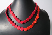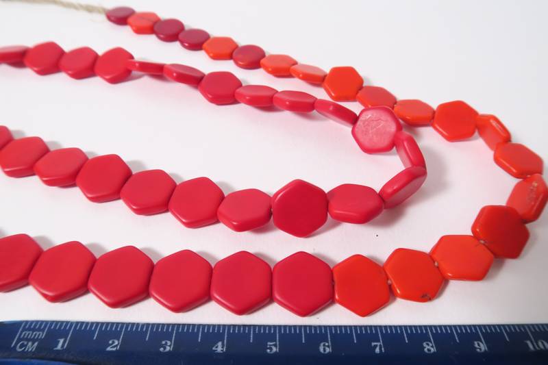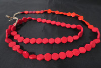 Strang alter Glasperlen, von Böhmen (Gablonz, Jablonec) um 1920 - 1960 nach Westafrika gehandelt. Sehr beliebt bei den Fulani. Schöne Rottöne. Stranglänge ca. 85cm. Durchmesser der Plättchen ca. 14mm. Dicke der Plättchen ca. 3mm. Gewicht ca. 75gr. Geringe Farbabweichungen sind bedingt durch digitale Wiedergabe möglich.