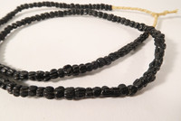 Strang schwarze alte Handelsperlen, von Europa um 1880 - 1930. nach Westafrika gehandelt. Von dieser Sorte sind mehrere ganz ähnliche Stränge vorrätig. Zumeist guter Zustand, teils bestoßen mit Chips. Stranglänge ca. 64cm. Durchmesser der Perlen ca. 5 - 6mm. Gewicht ca. 30gr.