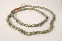Alte Glasperlen von Murano / Venedig zwischen 1880 und 1930 nach Westafrika gehandelt. Die Glasperlen sind in zumeist gutem Zustand, teils bestoßen mit Chips. Länge nur Perlen ca. 72cm. Durchmesser der Perlen ca. 7mm. Gewicht ca. 64gr.