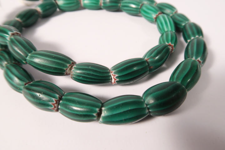 0509A grüne Chevron Glasperlen green Chevron trade beads