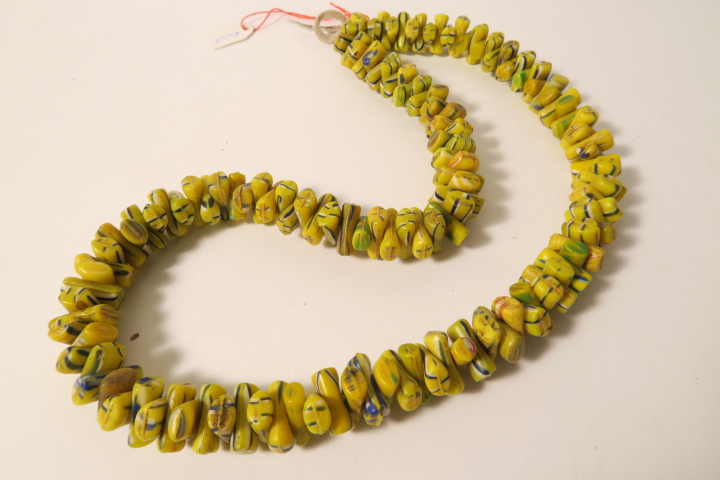 Strang alter Handelsperlen, von Böhmen (Gablonz, Jablonec) um 1900 - 1950 nach Westafrika gehandelt. Stranglänge ca. 58cm. Durchmesser der Perlen ca. 17mm. Gewicht ca. 218gr. Geringe Farbabweichungen bedingt durch digitale Wiedergabe sind möglich