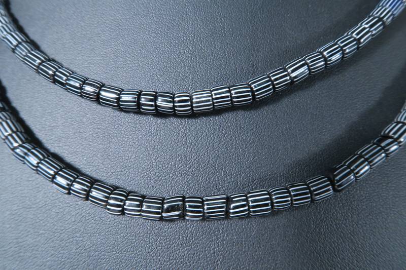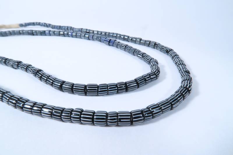 Strang alter dunkelblauer und schwarzer Handelsperlen, von Venedig um 1880-1930 nach Westafrika gehandelt. Die Glasperlen sind zumeist in einem sehr gutem Zustand. Stranglänge ca. 85cm. Durchmesser der Perlen ca. 5mm. Gewicht ca. 40gr. Geringe Farbabweichungen sind bedingt durch digitale Wiedergabe möglich.