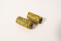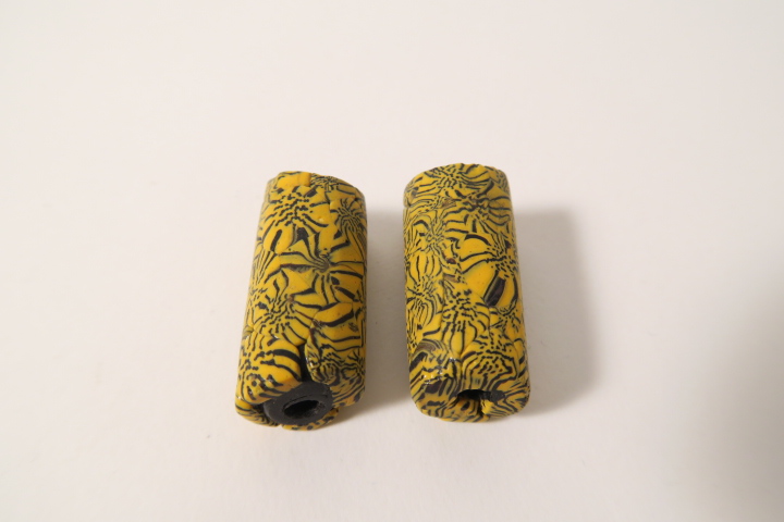 2 alte Millefiori Glasperlen, Murano, vor 1930. Altersgemäßer Zustand, teils bestoßen mit Chips. Maximale Größe ca. 31 x 14mm.