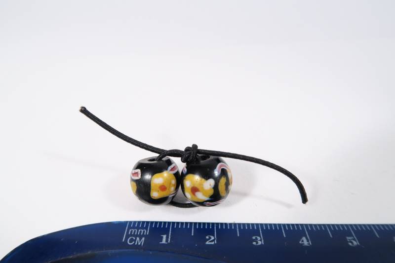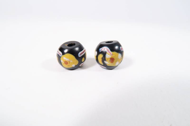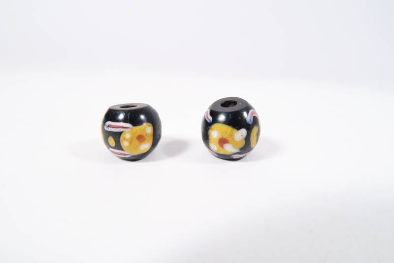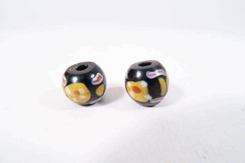 2 Glasperlen, Murano, ca. 1850 - 1900, aus dem Afrikahandel. Sehr guter Zustand. Länge ca. 10 - 11mm. Durchmesser ca. 12 - 13mm. Good Condition.