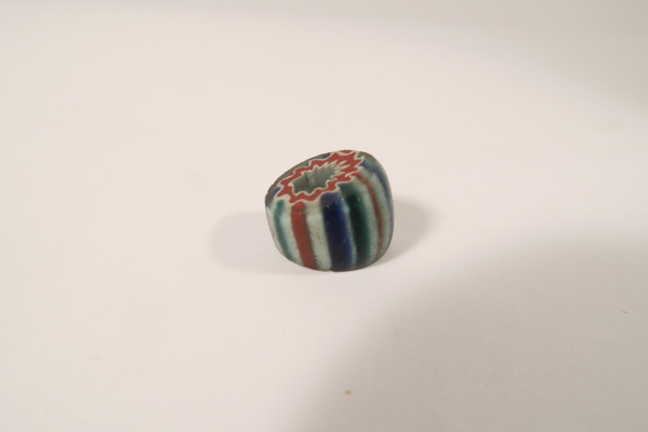 alte Glasperle, Murano / Amsterdam, ca. 16/17Jh. , aus dem Afrikahandel. Altersgemäßer Zustand, teils bestoßen mit Chips, schräg abgeschliffen. Maximale Größe ca. 12 x 16mm.