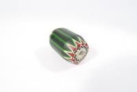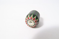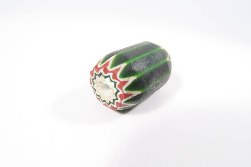 Seltene Glasperle, 6-lagige Chevron mit grüner Außenlage, Murano vor 1930, aus dem Afrikahandel. Guter Zustand, ein neuerer Chip an einem Ende. Dimension ca. 29 x 18mm. Gewicht ca. 20gr. Bead size ca. 16 x 17mm. Good condition, a small new chip on one end.