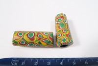 2 alte Millefiori Glasperlen, Venedig, Murano vor 1930, aus dem Afrikahandel. Perlenlänge ca. 36mm. Perlendurchmesser ca. 14mm.