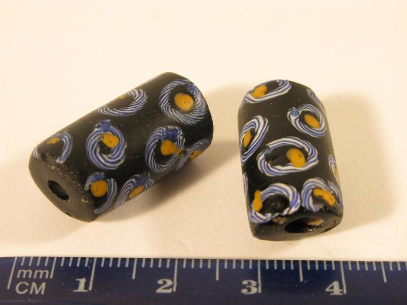 2 schöne Handelsperlen, Glasperlen, Murano vor 1930, aus dem Afrikahandel. Schönes Dekor, beidseitig schräg angeschliffen, sehr guter Zustand. Dimension ca. 21 x 12mm.