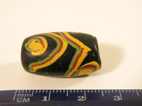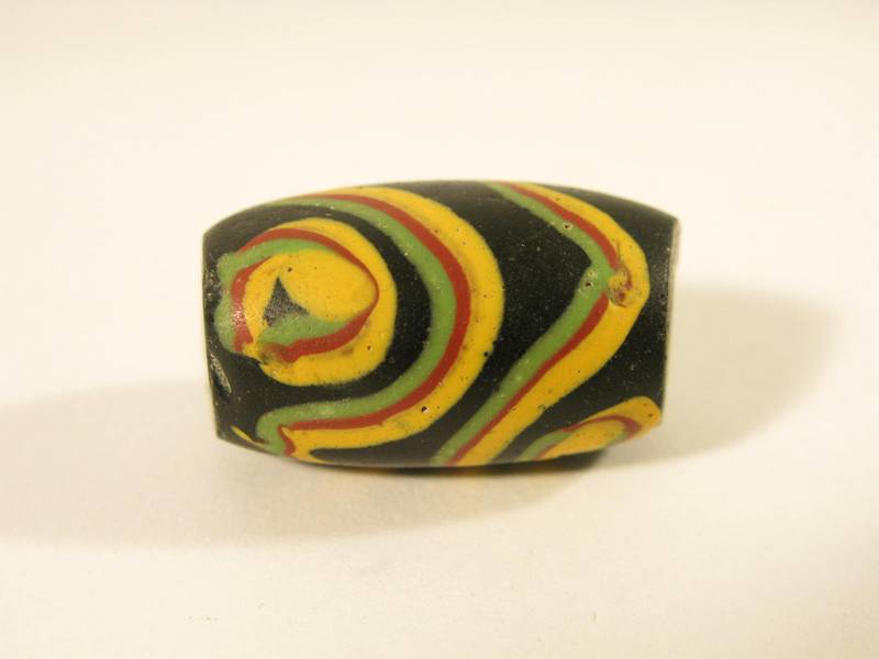 schöne Glasperle, Murano vor 1930, aus dem Afrikahandel. Schönes Dekor, beidseitig schräg angeschliffen, weisser Innenkern, sehr guter Zustand. Dimension ca. 24 x 14mm.