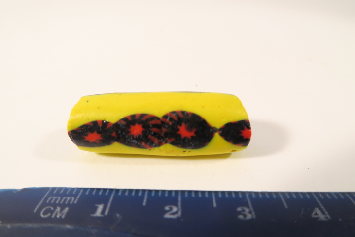 Alte Millefiori Glasperle, Murano vor 1930. Guter altersgemäßer Zustand, kleine Chips. Dimension ca. 30 x 12mm.