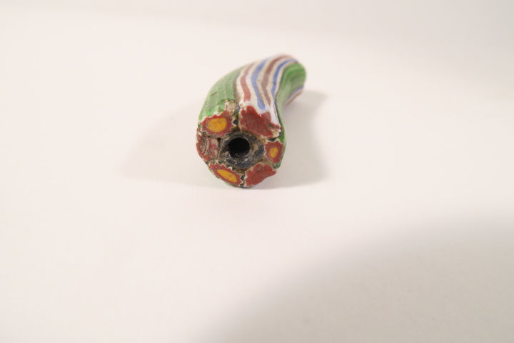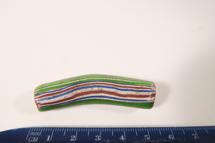 alte Glasperle, Murano, ca. 1850 - 1930 , aus dem Afrikahandel. Guter altersgemäßer Zustand, bestoßen mit Chips. Größe ca. 54 x 13mm.