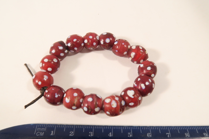 15 Glasperlen, Murano vor 1930, nach Äthiopien gehandelt. Guter altersgemäßer Zustand. Größe ca. 11 x 12mm. Bead size 11 x 12mm.