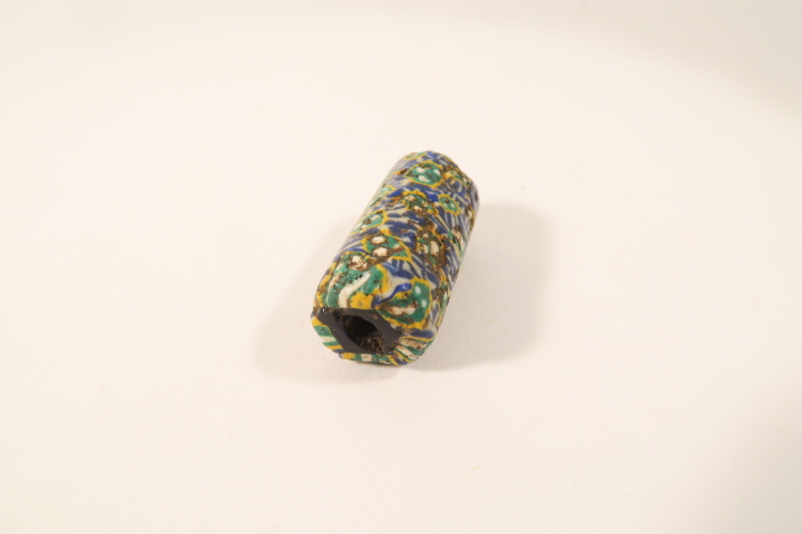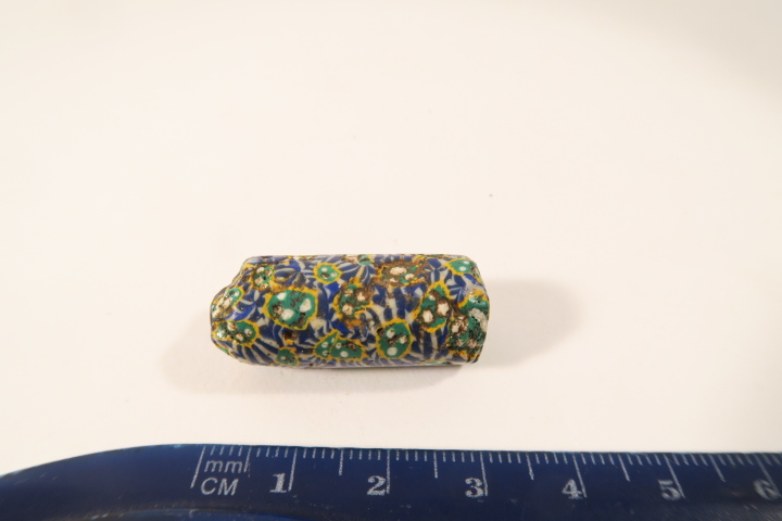 alte Glasperle, Murano, ca. 1850 - 1930 , aus dem Afrikahandel. Altersgemäßer Zustand, bestoßen mit Chips, siehe Fotos. Größe ca. 32 x 14mm.