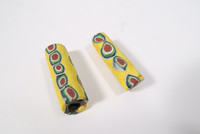 Paar Millefiori, Glasperlen, Venedig ca. 1880-1930, Seltener Typ. Länge ca. 35 - 36mm, Durchmesser ca. 11 - 12mm. Altersgemäßer Zustand, bestoßen mit Chips, siehe Fotos.