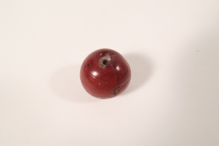 alte Trade Bead, Glasperle mit weißem Innenkern, Murano, 19.Jh., die Perle hat einen kleinen Sprung in der roten Farbschicht, seltene Perle, aus dem Afrikahandel. Perlengröße ca. 18 x 20mm.