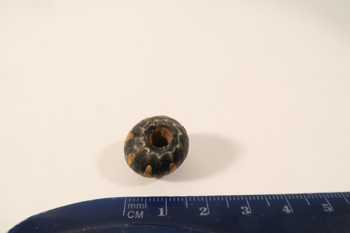 Alte Glasperle, Murano, 16/17Jh., Größe ca. 16 x 17mm. Altersgemäßer Zustand, bestoßen mit Chips, siehe Fotos.