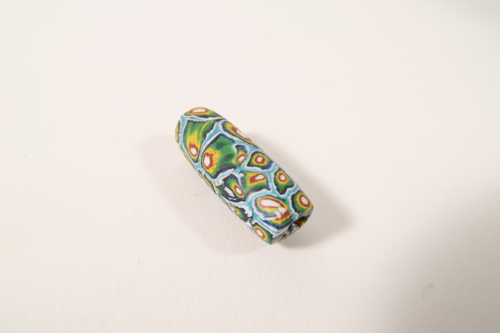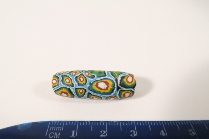 alte Millefiori Glasperle von Murano / Venedig nach Westafrika gehandelt. Größe ca. 31x11mm. Bestoßen mit Chips, siehe Fotos.