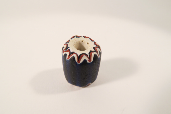 Schöne 5 lagige Chevronperle, 18.Jh. aus dem Afrikahandel. Blaue Außenlage. Dimension ca. 23 x 19mm. Gewicht ca. 18gr.