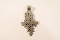 Schöner und getragener Kreuzanhänger von orthodoxen Christen Äthiopiens aus der Region von Aksum. Silberlegierung, Länge mit Öse ca. 6,5cm. Gewicht 19gr.