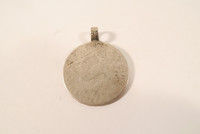 Alter Münzanhänger aus Äthiopien aus einer Silbermünze aus der Zeit von Menelik gefertigt. Länge mit Öse ca. 5cm. Gewicht ca. 27gr.